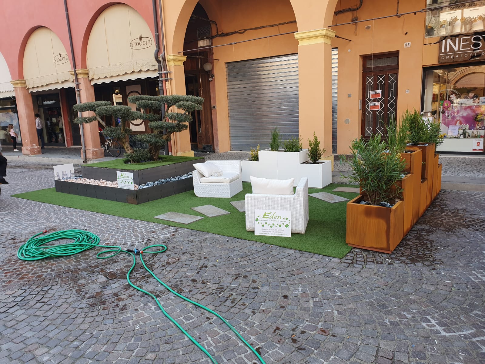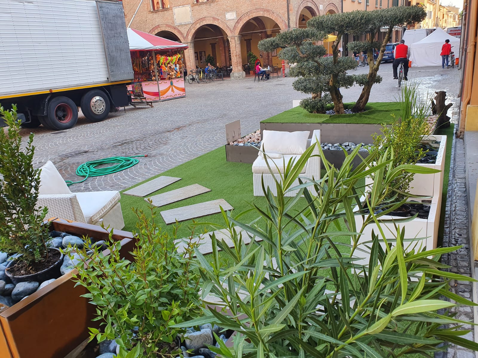 In questo intervento abbiamo realizzato uno stand espositivo a tema giardino presso un evento fieristico nel comune di Cento in provincia di Ferrara.